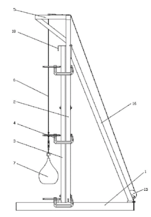 7:悬臂槽钢 8:标高刻度盘 9:立框槽钢 10:电葫芦 11:开关圆柱 12:霰弹冲击体 13:下斜支撑
