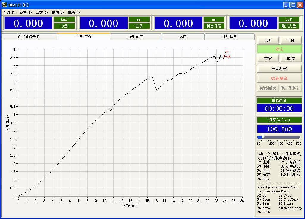 1、超高级采样功能:最高达到0.2ms(5khz),超高采样功能对于脆性材料能够捕捉断裂时瞬间力值变化。