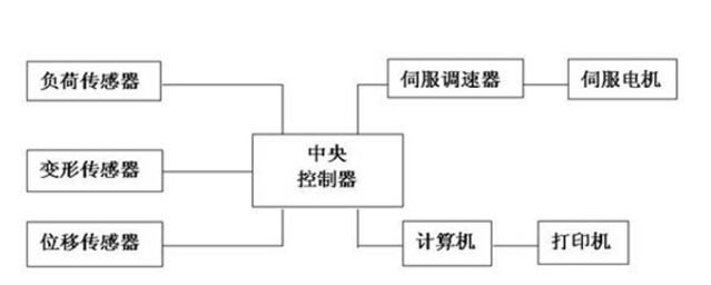 1.采用伺服电机+驱动,通过传动机构带动横梁上下移动,实现试验加载过程。