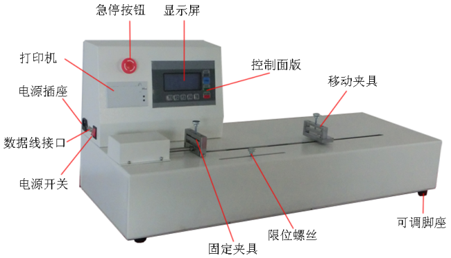 本机采用卧式结构,用高精度齿轮减速电子调速电动机拖动负载夹头,加载性能平稳。整机由拖动电机、主机壳、微电脑控制器、微型打印机等组成,测力单元采用高精度力值传感器和以单片机为中央处理器的数字控制系统构成。
