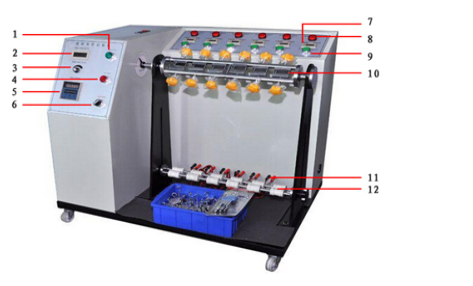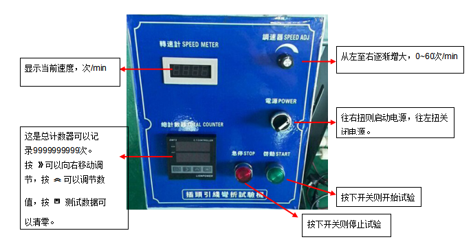 线材弯折摇摆试验机又称线材弯折试验机,摇摆试验机的简称。本试验机符合UL-817等有关标准“软线组件和电源软线通用安全要求”的规定。适用于有关生产厂家和质检部门对电源线、DC线进行弯曲试验。导线连接可靠性测试、端子牢固性测试、绝缘皮牢固性测试、防拉力传入测试、散丝与断丝目检、软线连接器触片下陷深度检测、突拉测试、摇摆测试。本机可以测试插头引线及电线耐折强度,是将试品固定于夹具后施重,经弯曲到预定次数后,检测其断线率,或无法通电时机台自动停机,检视其总计弯曲次数。(可以测试电源线、鼠标线、键盘线、数据线、游戏机线材、电线、端子线材、影院线材、耳机线材等各种非标定制机)