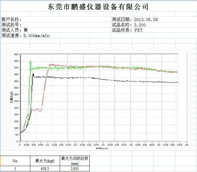 输出结果:生产报告word、excel、PDF格式、可显示剥离力与位移曲线图 |